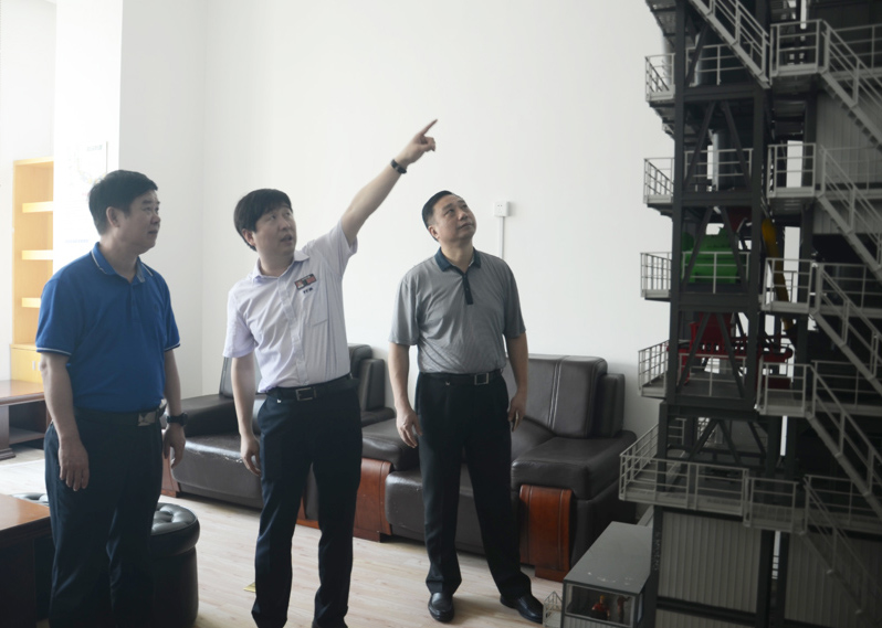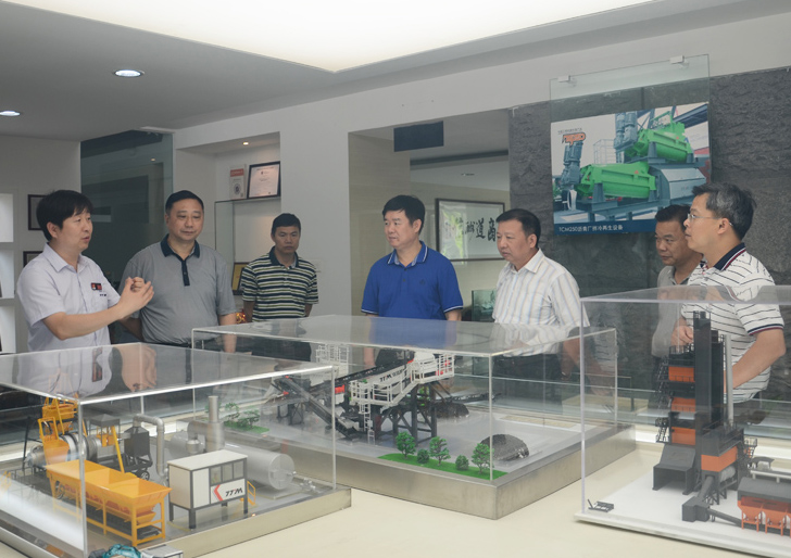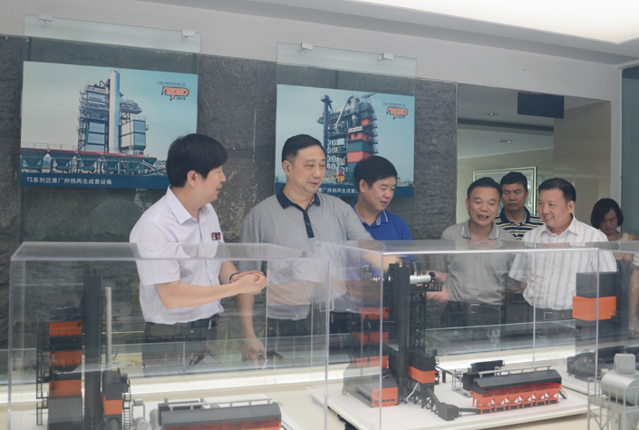 肖明華副主席一行人正在參觀考察環(huán)保型瀝青混合料攪拌設(shè)備模型