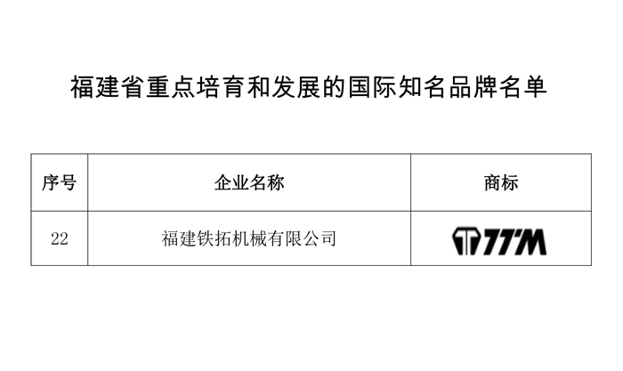 鐵拓機(jī)械入選“福建省重點(diǎn)培育和發(fā)展的國際知名品牌”名單
